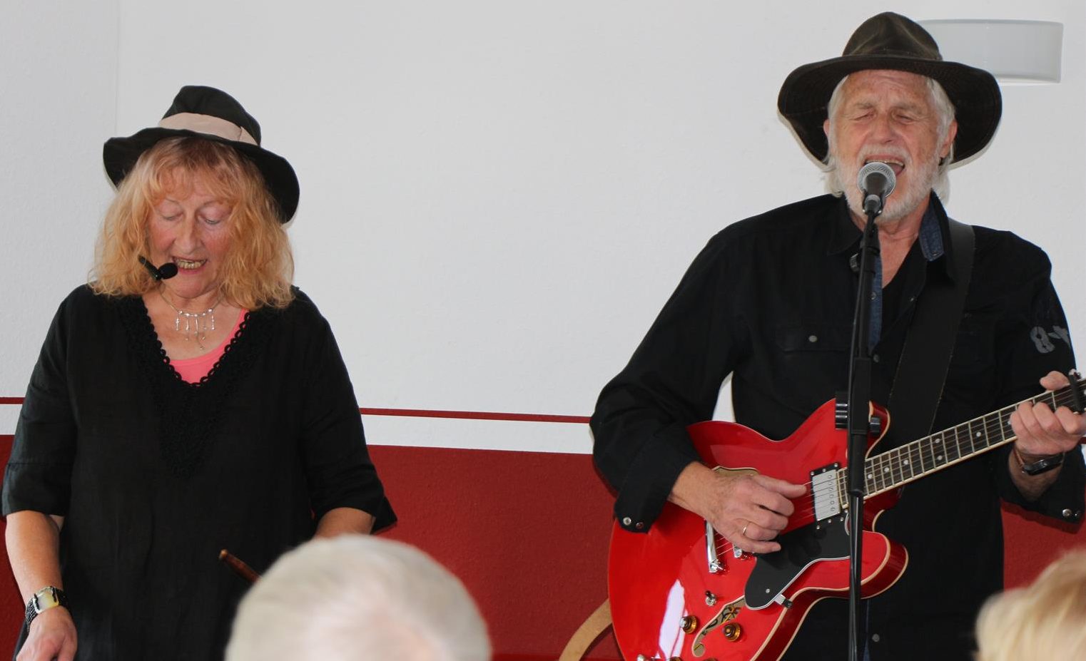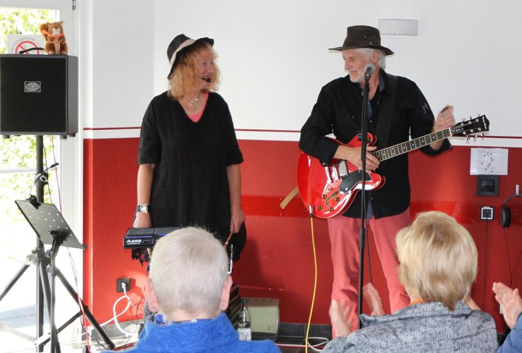 Aktuelle Hits von gestern und heute, so lautet die musikalische Devise der beiden Künstler, die den Roten Pavillon bei bestem Wetter in der unerwarteten Verlängerung des Sommers besuchten. Und es war tatsächlich ein bunter Mix, den Inge und Werner im Gepäck hatten. Neben Coversongs, wie „Always on my mind,“ den meisten von Elvis Presley bekannt und „Renegades“ auch echte Klassiker, wie „Layla“ von Eric Clapton und „I shot the Sheriff“ des legendären Bob Marley.