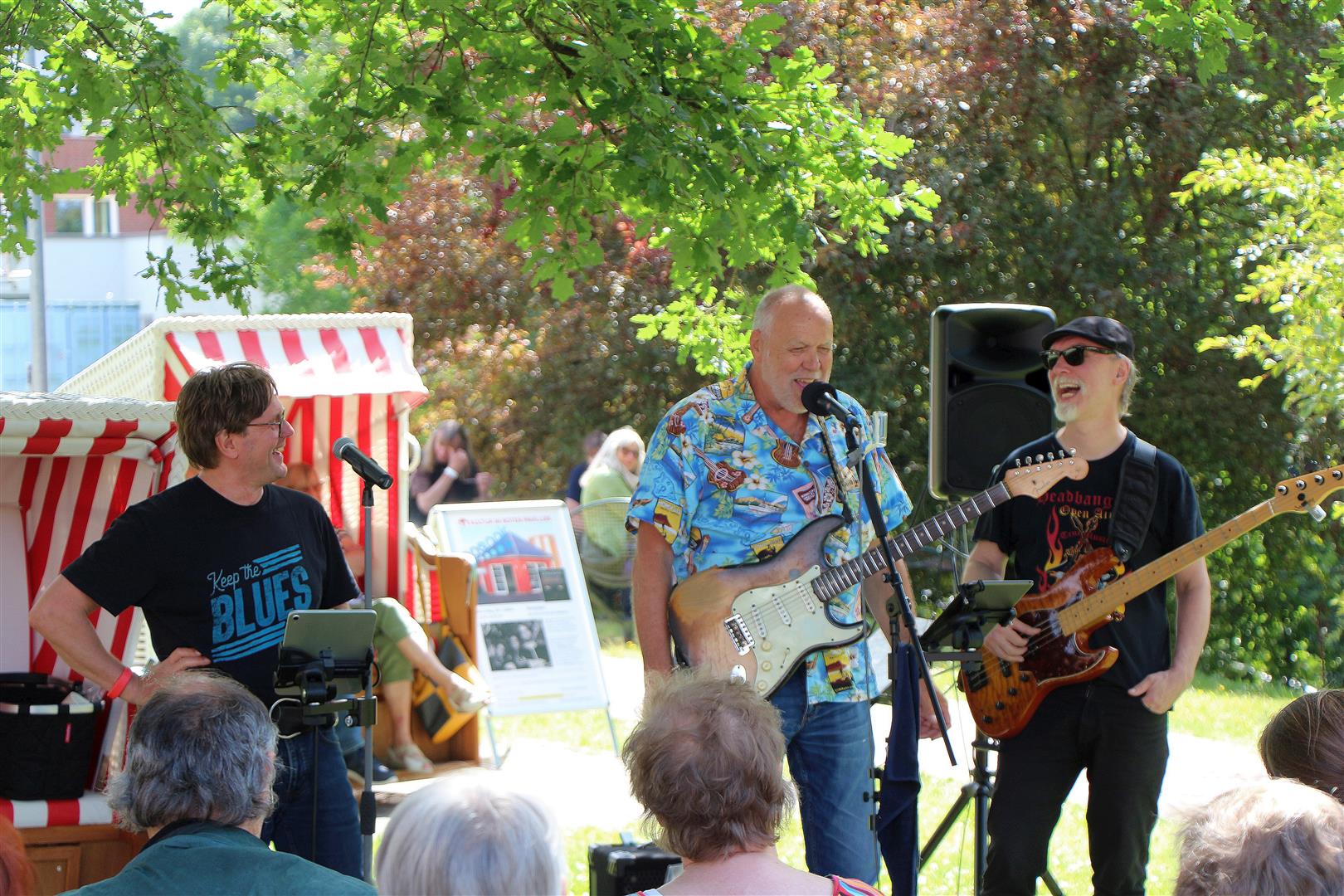 Diese Jungs haben den Blues im Blut ! Da hilft kein Krankenhaus und auch der Doc ist dagegen machtlos, denn diese Leidenschaft kann man nur musikalisch rauslassen. Insofern ist das betreute Musizieren auf unserer Pavillonwiese im Elmshorner Krankenhaus die beste Therapie.