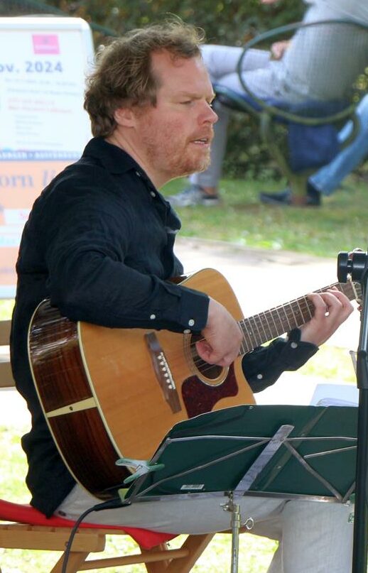 Es folgten eigene von Max komponiert Lieder, wie „Der Kastanienbaum“ und „Ride on“, das auch aus der American-Folk-Feder von John Denver stammen könnte. International ginge es unter anderem mit Mikael Wiehes schwedischem „Flickan och krakan“ weiter, ein Lied über ein Mädchen, dass das Leben einer kranken Krähe retten möchte, welches das Publikum mit seinen treibenden Beats in seinen Bann zieht.