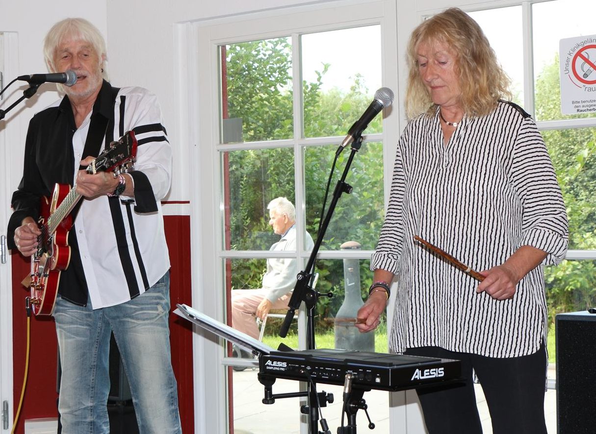Aktuelle Hits von gestern und heute, so lautet die musikalische Devise der beiden Künstler, die den Roten Pavillon bei bestem Sommerwetter besuchten. Und es war tatsächlich ein bunter Mix, den Inge und Werner im Gepäck hatten. Neben Coversongs, wie „Always on my mind“, den meisten von Elvis Presley bekannt und „Message in a bottle“ auch echte Klassiker, wie „When You say nothing“ von Ronan Keating und „Still got the blues“ des legendären Gary Moore.