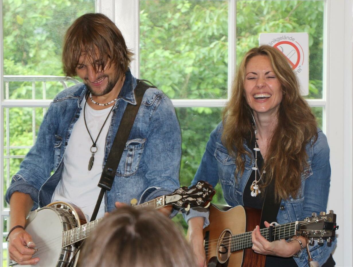 Es folgten die eigenen Songs „Horizon“ „Chang of heart oder Colors, jeweils von Gitarre und Banjo begleitet, welche immer wieder  Geschichten und Begebenheiten aus dem Leben erzählen.
