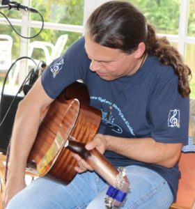 Neben vielen eigenen Kompositionen hat Attila Vural aber auch noch einige Klassiker mitgebracht. Bei „Sound of Silence“, „Samba Pa Ti“, oder „Fragile“ von Sting läuft im Kopf immer die bekannte Melodie und manchmal der Text mit. Und Fuß, Hand oder Kopf werden fast automatisch immer mit bewegt, eher mitgerissen, erst recht bei „Dock of the Bay“ von Otis Redding. Attila Vural lässt den Pavillon und die Zuhörer vor der Tür immer wieder staunen, wie er das macht. Sogar die Wildenten auf dem Teich spielen mit und quäken immer wieder dazwischen, aber durchaus an den passenden Stellen wie er hinterher lächelnd beteuert.